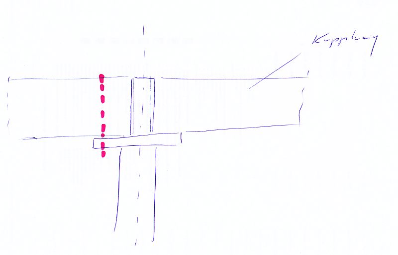 wenn von oben wie in meiner zweiter zeichnung , müsste man in der schraube bohrung mit gewine zb 4 mm schneiden - am besten linksgewinde. Und wahrscheinlich auch bischen material auf der kupplung wegfräsen.