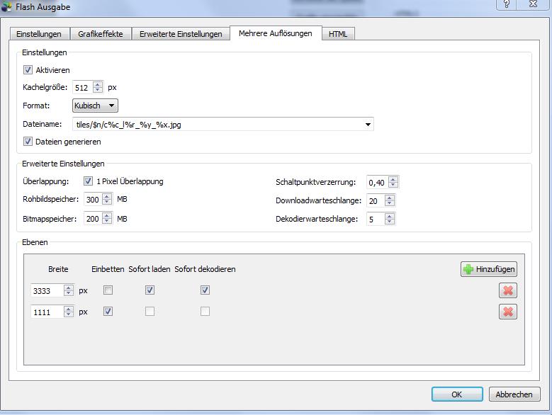 Ich habe auch die Multires-Funktion (mehrer Auflösungen) eingebaut, die das Nachladen von höheren Auflösungen ermöglicht.