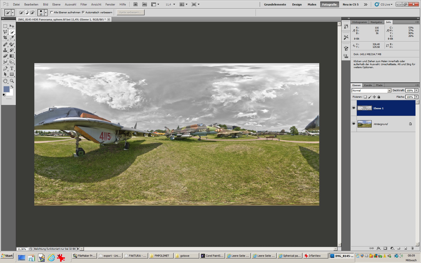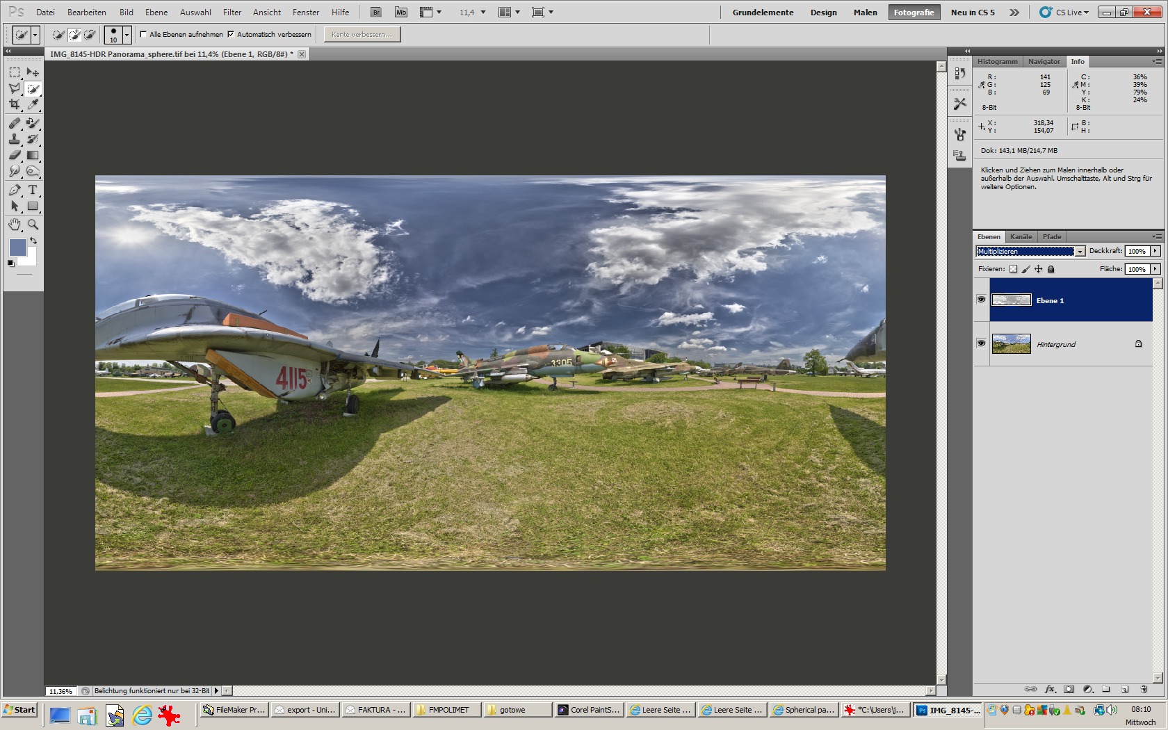 1. mache von normales , fertiges panorama ( equi) eine zusätzliche ebene in PS.