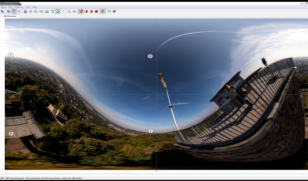 Wenn Du alle 4,5,6 Bilder im Kasten hast kannst Du Dir noch überlegen den Nadir u./o. den Zenith zu schließen. Ich knips dann meistens den Boden aus einer anderen Perspektive (aber nicht aus Pole-Höhe, sondern aus eingeschobener Masthöhe) und frickel das per Viewpoint-Korrektur rein.
