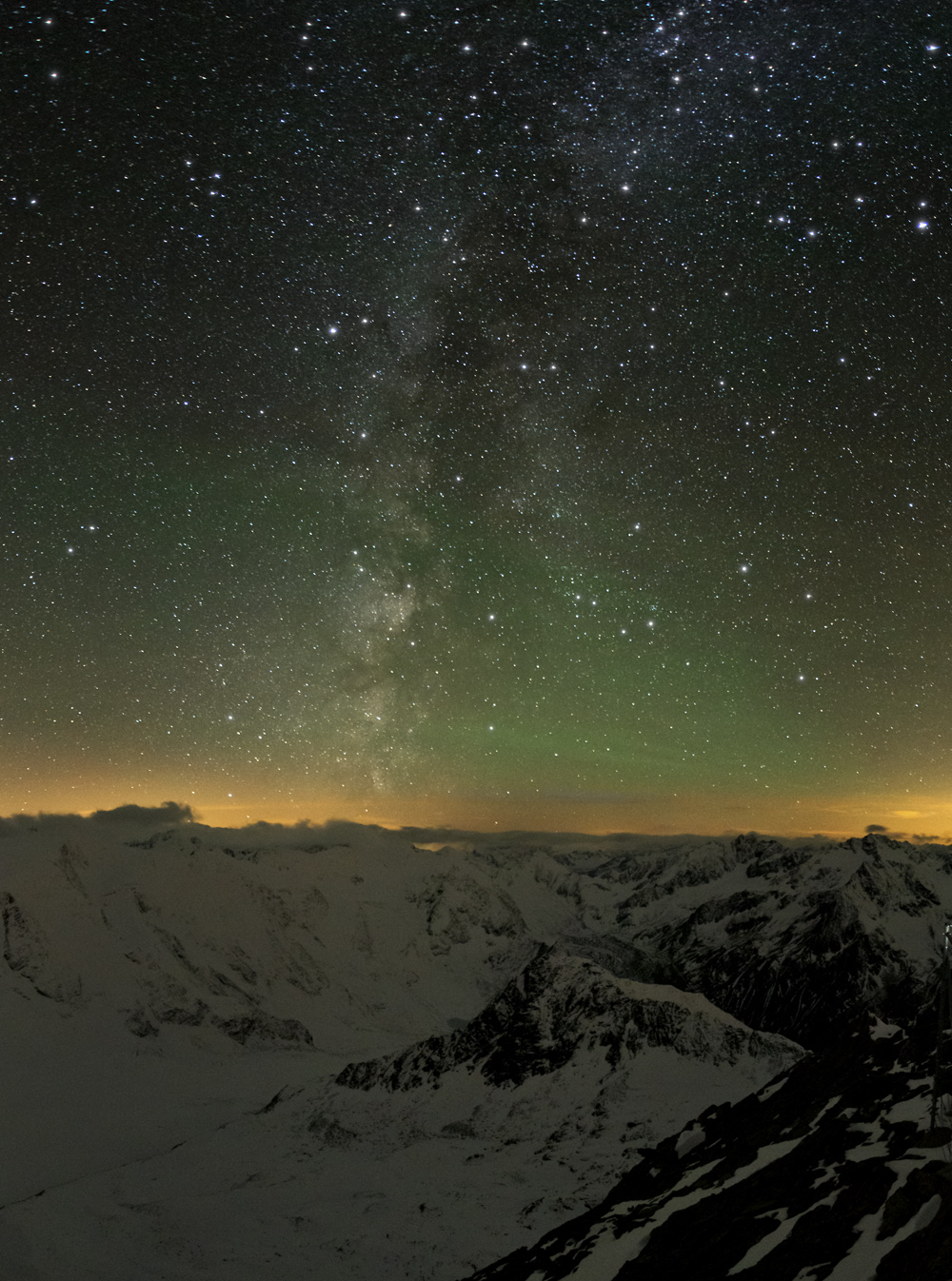 noch ein Teilpanorama mit Blick auf die Wildspitze (3.768m) und dem Taschachferner der ins Tal "rinnt". Nikon D800+Nikkor 85mm (Blende 3,2; 8 Sek., ISO 1600)- 2-reihig 10 Einzelbilder.