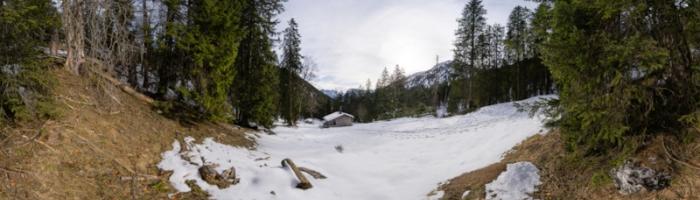 anderen Panorama. Das ist die mit der grünen DAV-Fahne vor dem Haus, oben am Hang.