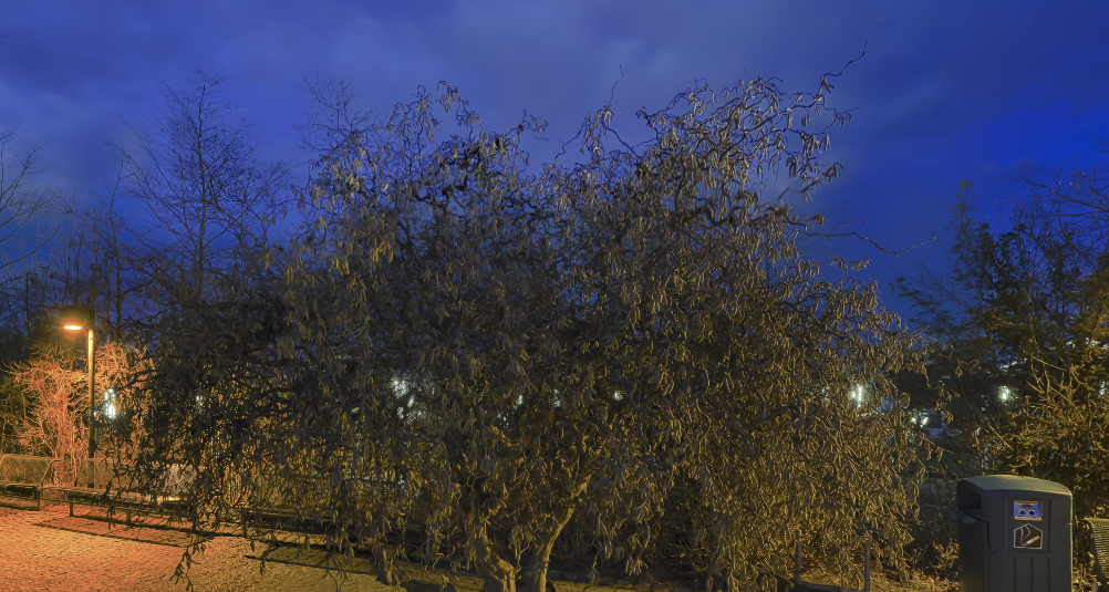 Das war mein größtes Problemkind. Zum Einen haben sich die Zweige bewegt und mir dadurch das HDR schon "zermatscht" (wurde mit Anti-Ghosting auch nicht besser), zum Anderen verläuft genau da der Übergang zwischen oberer und unterer Reihe. In der unteren Reihe war der Himmel schon deutlich dunkler.