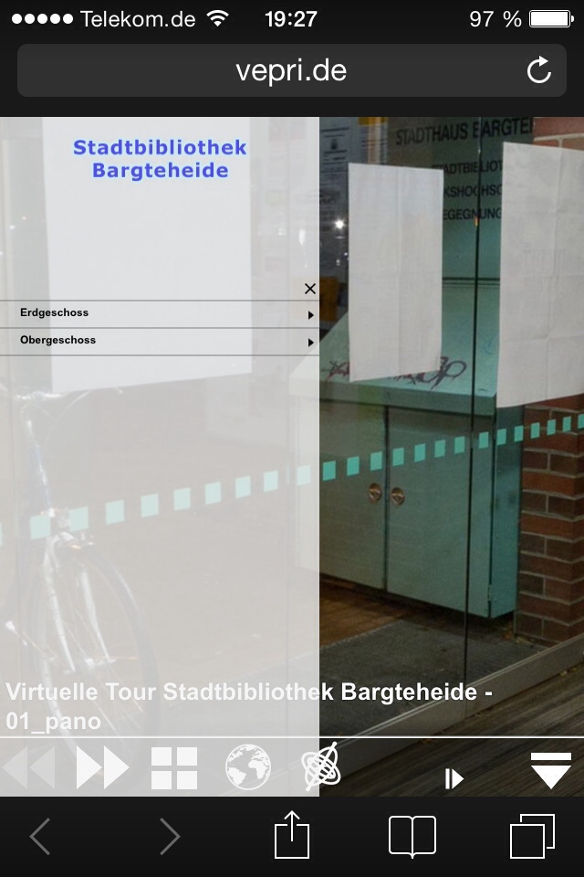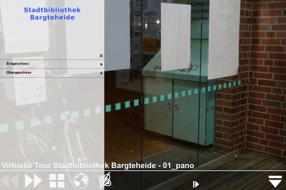 Anhand einer Panoramareihe, die ich im Winter von unserer Stadtbibliothek erstellt hatte, wollte ich mal eine Menüsteuerung testen.