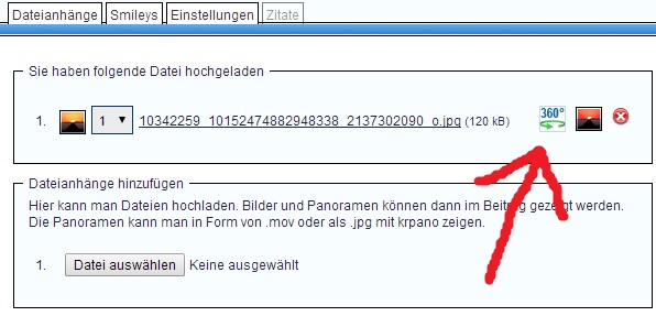 Du musst den Cursor an die Stelle setzen, wo du das Panorama haben möchtest und dann den Button drücken. Dann taucht an der Stelle eigentlich sowas auf [panoram]10605[/panoram].