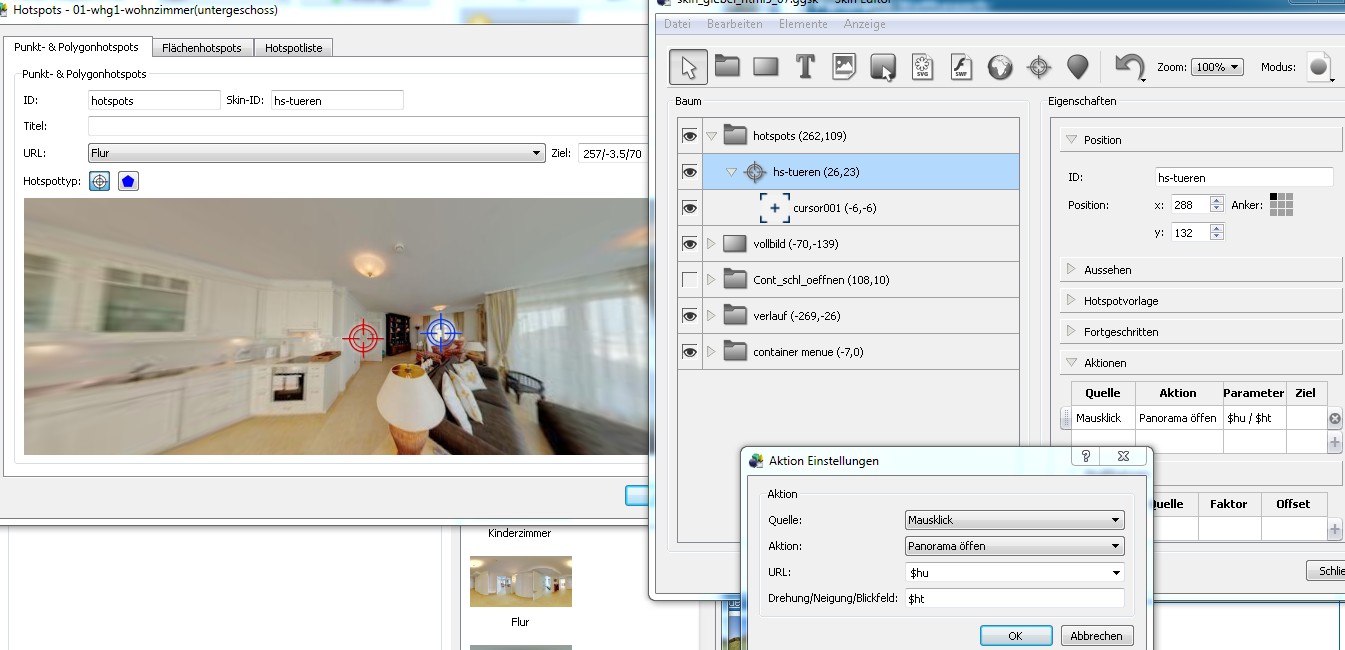 Da muss ich für jeden der 3 Hotspots einen anderen Befehl (Panorama öffnen) hinterlegen.