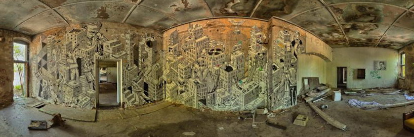 Am Wochenende schlich ich durch eine Industrie-Ruine und entdeckte dieses Kunstwerk (darauf klicken um zum virtuellen Kugelpano zu kommen):