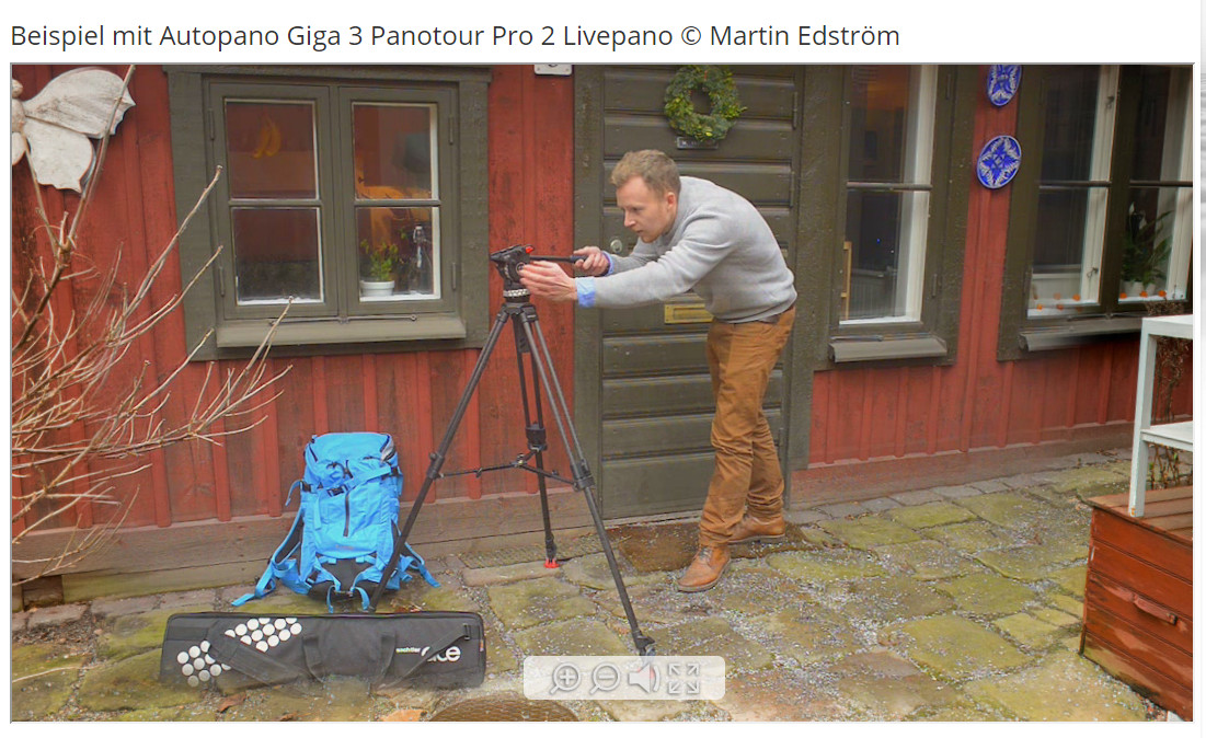 Nehme ich aber, wie es bei Personen möglich ist, das Panorama ohne die Person auf und zeichne im Anschluss das Video auf funktioniert es ohne Probleme, wobei natürlich für den Akteur vor der Cam einige Einschränkungen gelten, allen voran ist die Bewegungsfreiheit stark eingeschränkt. er kann auf die Linse zulaufen und sich von dieser entfernen, sich aber seitlich nur eingeschränkt bewegen, ein Schwenk ist nämlich nicht möglich.