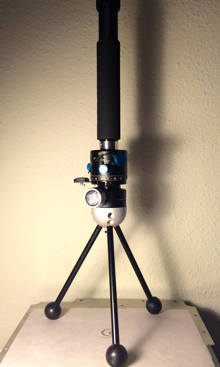Das 30iger-Packmaß ist erstaunlich. Auf welche Höhe kommt Deine Lösung (bis oberhalb Kugelkopf), wenn die Füße unten als 3-Bein ausgeklappt sind?