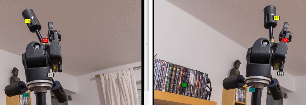 Ich gehe mal davon aus, dass Du nach dem Setzen der Kontrollpunkte neu optimiert hast? Das ist ein Punkt, den eigentlich nur Anfänger nicht wissen.... Was ich überhaupt nicht verstehe, ist, dass es trotz des Setzens von Kontrollpunkten im Bereich des fotografierten Stativkopfes keinerlei Änderungen gibt. Die Versätze sind immer noch genauso da, als hätte ich gar keine Kontrollpunkte erstellt.