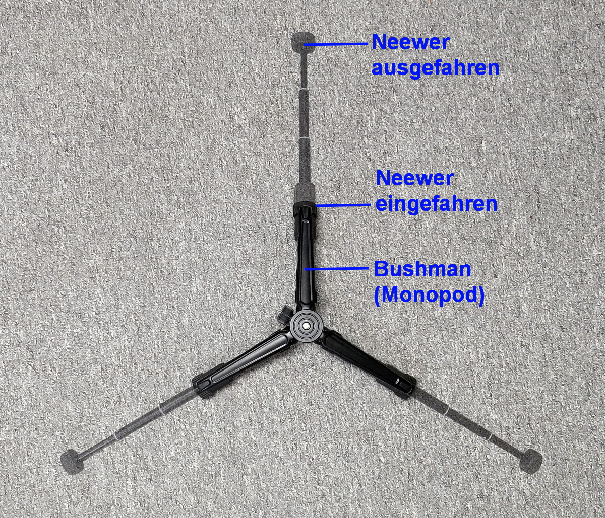 Aber: bei Wind kann das Bushman wieder punkten: schlanke Rohre = geringe Angriffsfläche, geringere Arbeitshöhe = kleinerer Hebelarm.