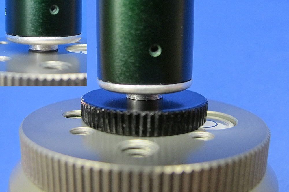 Das Sirui hat an der Stelle bereits ein Metallteil das gut läuft. Ich musste lediglich noch auf den Rotator adaptieren. Das Alu-Rohr des Zielstocks ist innen komplett rund. Ein einfaches Drehteil verbesserte den Rundlauf entsprechend.