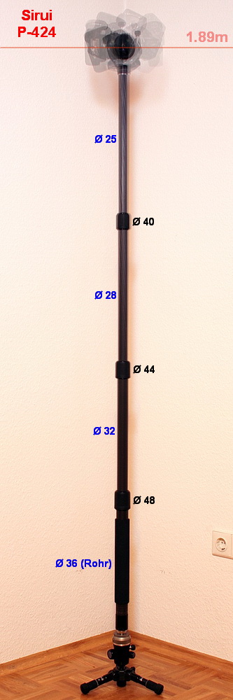 hier noch das Sirui P-424 (noch mit Wasserhahn-Überwurf am unteren Ende)