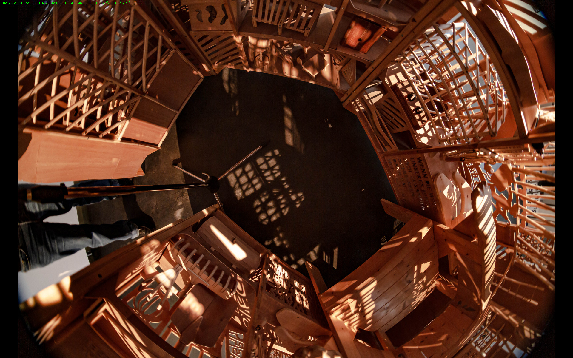 Vor über neun Jahren habe ich bei einer Ausstellung ein begeh- und besitzbares Kunstobjekt mit einem Einbeinstativ aufgenommen. Um herauszufinden, ob ich das Ergebnis von 2012 etwas verbessern könnte, habe ich mir die RAW-Dateien noch mal vorgenommen.