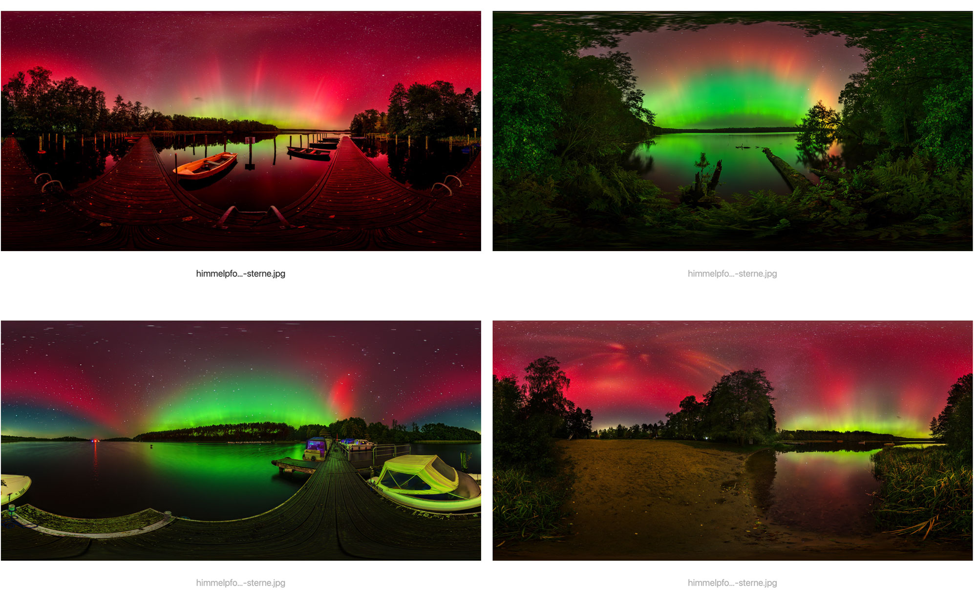 Hier ein Screenshot von 4 Panoramen aus der Nacht 10. - 11.10.2024 von den Seen rund um Himmelpfort.
