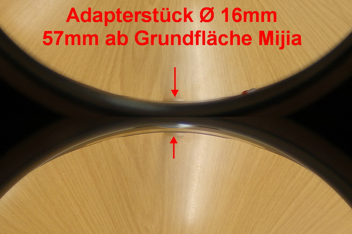 In einem weiteren Test hab ich meine angeschlagene Mijia wie schon zuvor auf den Funkauslöser montiert und diesen mit dem konischen Adapterstück auf den Tisch gestellt.