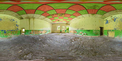 exhibition of old books, empty floor, 360 degree panorama, equirectangular, one door, <lora:View360:0.7>