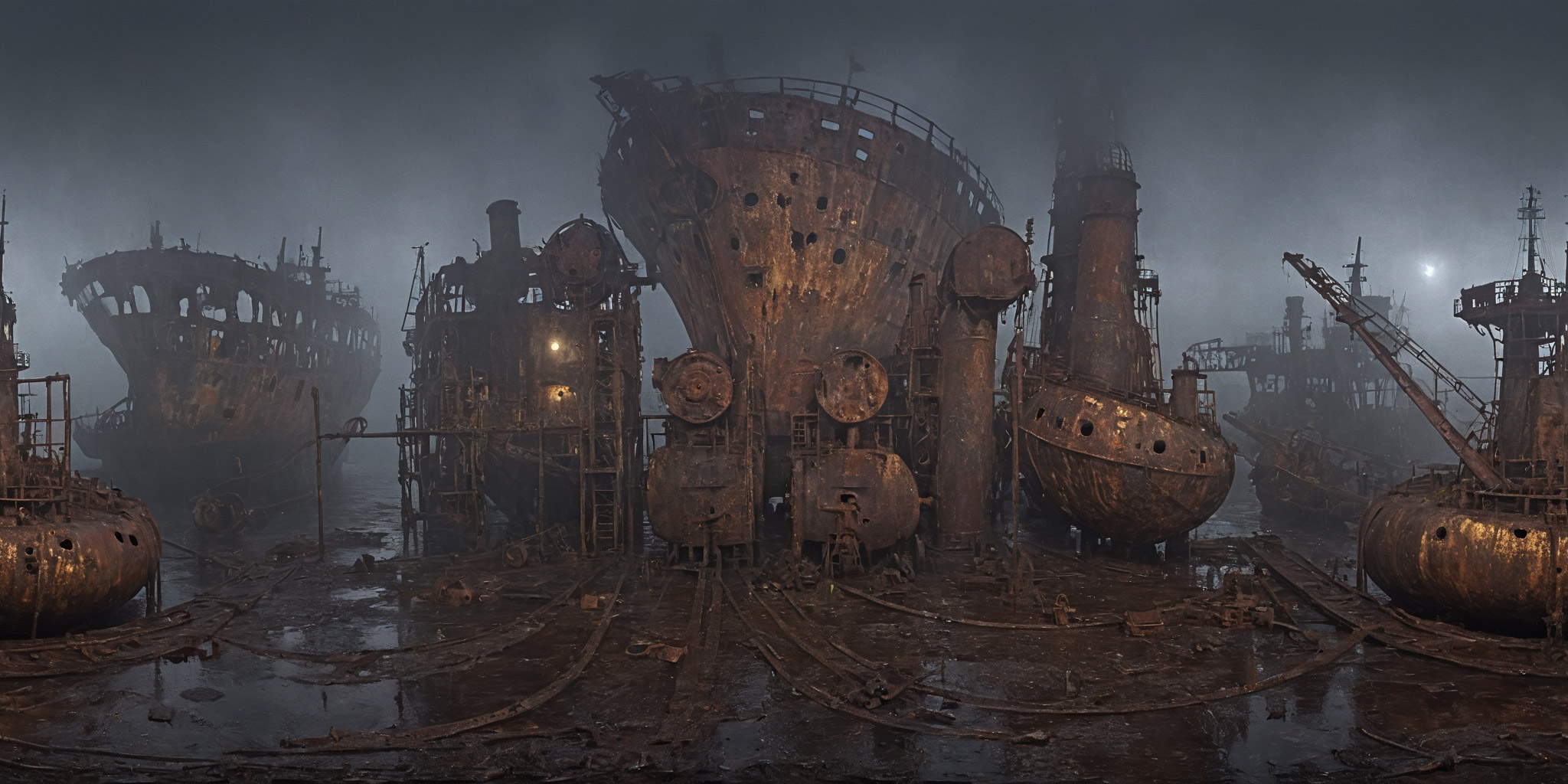 dark workshop with many tools, shelves, materials, many tools hanging on the wall and on the ceiling, iron working, welding, light reflections, artist at work, 360 degrees realistic equirectangular panoramic photo, 8k, high resolution, photo realistic, rich colors ,highly detailed,, <lora:Into_Darkness:0.7> <lora:Cloudify-SDXL:1>