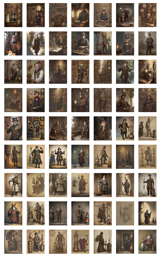 Ein altertümliches Kellergewölbe, Labor, Tische, Regale, Reagenzgläser, Phiolen, Bunsenbrenner, Fläschchen , Gläser, Phiolen, Säckchen und Dosen aus buntem Glas, Ton, Metall, Granit, Speckstein, Edelstein, Marmor, Leder, Kisten und Kästchen mit Ingredienzien, gefärbte Flüssigkeiten, Pulver, Handwaage mit Gewichten, Mörser, verschiedene Löffel und Spatel, Apothekerschäufelchen, Glasgefäß oder Töpfchen zum Kochen, Schüssel, Ständer, Rührstäbchen, Scheidetrichter, Filter, Trichter, Siebe, Pipetten, ein Brettchen und Messer, Kräuter, kleine Pfanne, Räucherlöffel, Schmelzkelle, Destillationsgerät, Glaskolben mit Destillationsbrücke oder Rückflusskühler, Kupferdestille, Retorte, Schreibzeug für Notizen, ein kleines Rechaud, Stövchen, Spiritusbrenner, Dreifuß, Untersetzer,Reinigungspinsel, Lappen, Sanduhren in verschiedenen Größen, kleine Schälchen, Schädel, Menschenschädel mit Kerze drauf, Tierschädel, Muscheln, Edelsteine, Mineralien,Schriftstücke und Bücher,Kerzen im Kerzenständer, Lampen,Laternen, mathematische Geräte, Zeichengeräte, Globus, obskure Geräte, Lupe, eine Destille, eingelegte Tiere/Organe, ein Mann mit weißem, wirren Haar, er trägt einen weißen Labormantel mit grüner Schürze, er hält ein Glasgefäß in der Hand, aus dem lila Rauch strömt, unheimliche Lichtstimmung, düster, wenig Beleuchtung,