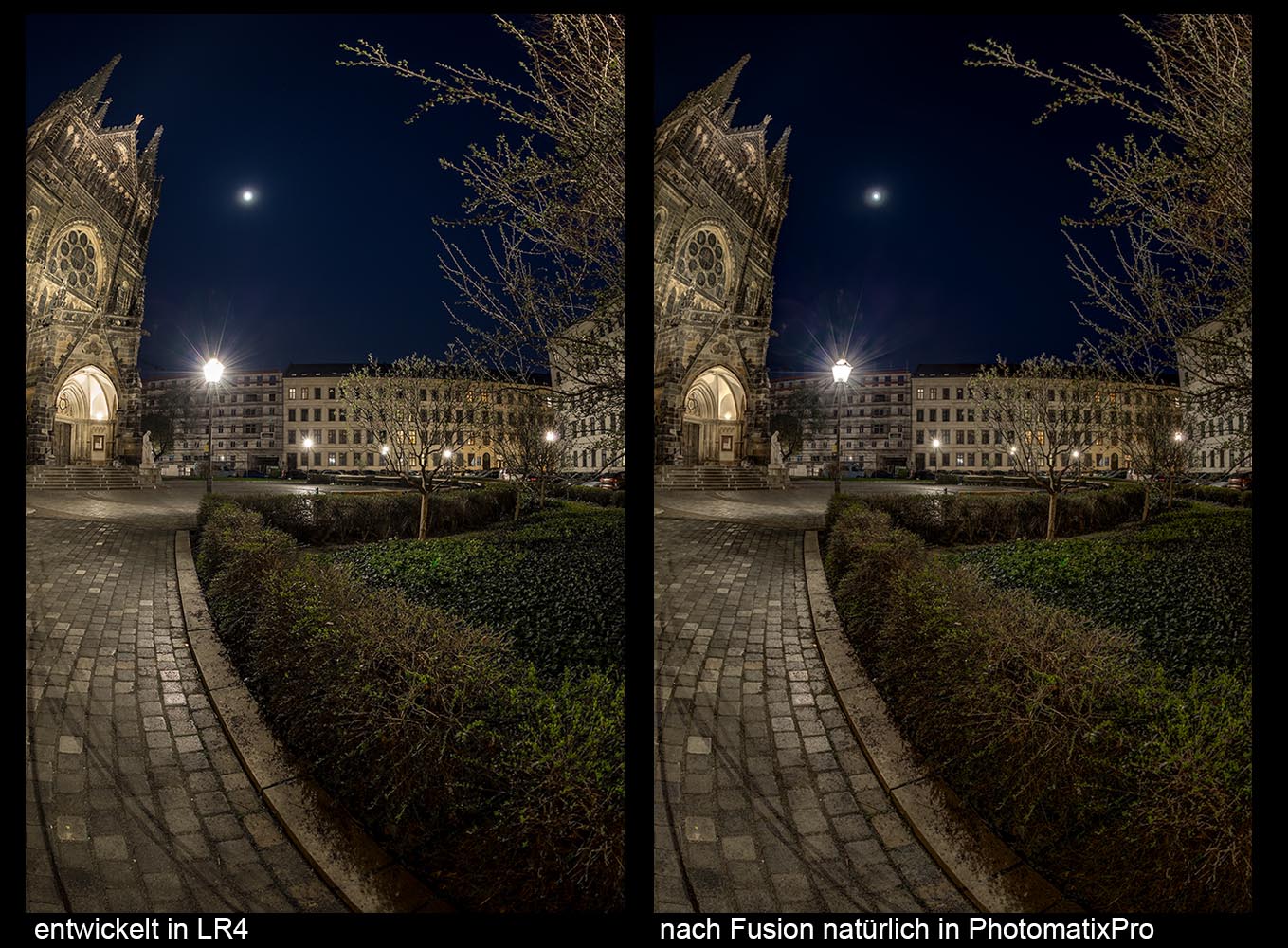 . Ich habe aber auch vor Ort versucht mit bloßem Auge zu erkennen was die da für "Birnen" reingeschraubt haben aber auch da nichts zu sehen außer pures Weis. Linse hatte ich eigentlich geputzt aber sind wir mal ehrlich bei Nacht erkenn ich auch mit meiner Kopflampe nicht mehr jedes Staubkörnchen und selbst wenn, einmal gedreht, ein Windstoß und schon sind hunderte wieder drauf. Es war auch der 1. Ausflug mit der Linsen- , Kamerakombi und ich bin mir nicht sicher ob es durch Dreck oder durch die Lichteinstrahlung aus allen Richtungen zu den Flecken gekommen ist. Ich werde das beobachten bei den nächsten Panos.Dabei übersehe ich fast, dass Du Deine Linse nicht geschrubbt hast und dass ich persönlich nen büschen Gelb rausgenommen hätte.