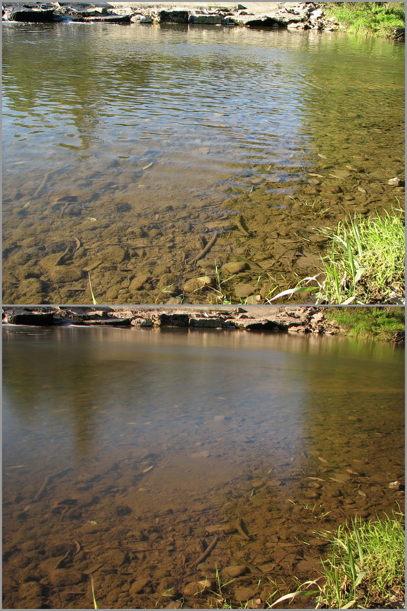 Wasser, Bäume, Sträucher und Büsche können matschig werden. Hier der Unterschied im Bild 1: 1/125 s. zu 15 s. und Bild 2: 1/250 s. zu 15 s.: