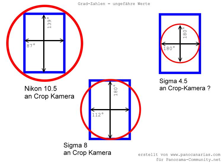 Erst das neue Sigma 4,5mm liefert tatsächlich ein kreisförmiges Bild mit einem 180° Bildwinkel in allen Richtungen.