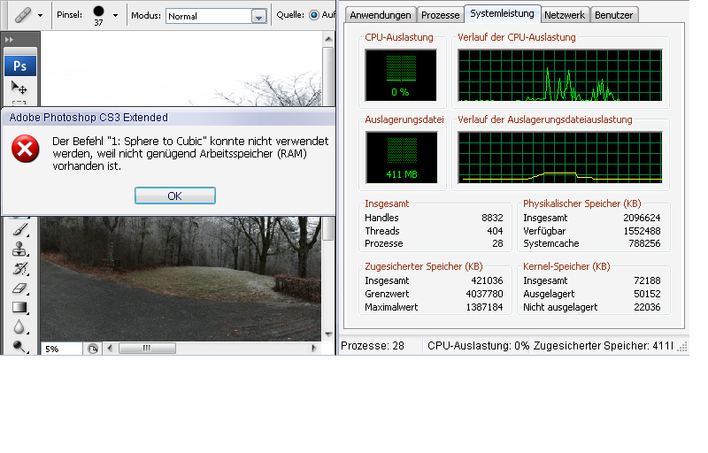 sind 4GB installiert (4x 1GB double-sided) erkennt mein BIOS volle 4GB, XP gibt dank dem Boot.ini-Edit 3GB an und im PS lassen sich wie oben auch nur 1705MB zuteilen.