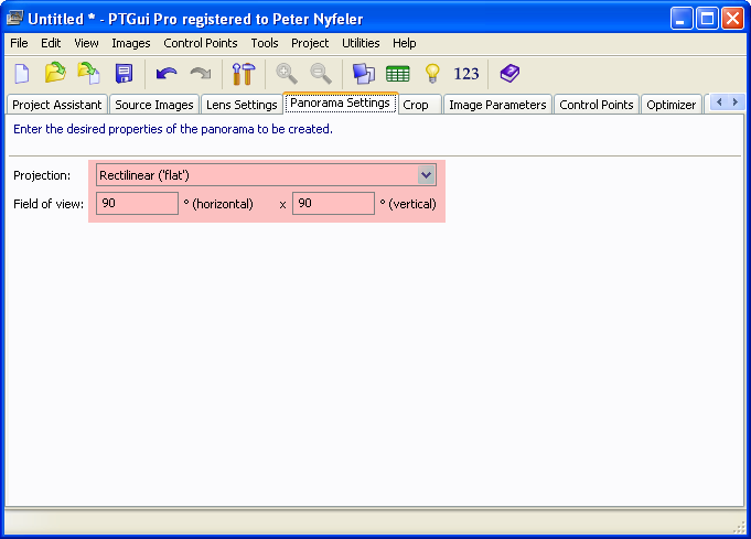 5.) Unter "Image Parameters" 90 Grad für Pitch eingeben