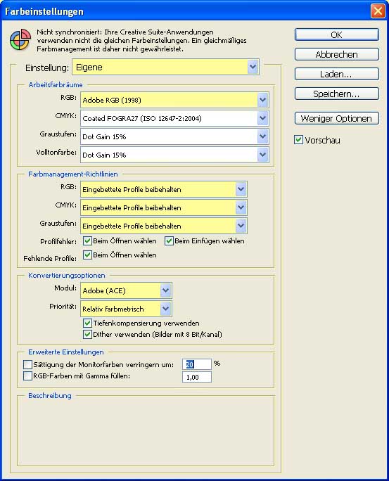Also, was genau stelle ich denn nun z.B. in Photoshop unter "Farbeinstellungen" ein? Welchen Arbeitsfarbraum wähle ich jetzt?