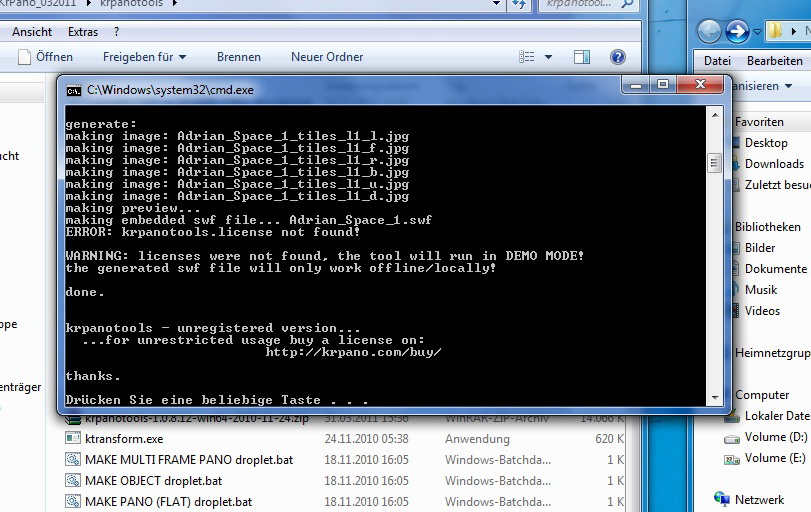ich habe heute mal auf die neueste Version von krpano geupdatet, meine "unlimited domain license & tools license" in die Ordner kopiert und jetzt bekomme ich die Fehlermeldung" Lizenz nicht gefunden". hmmm "kopfikratzi"