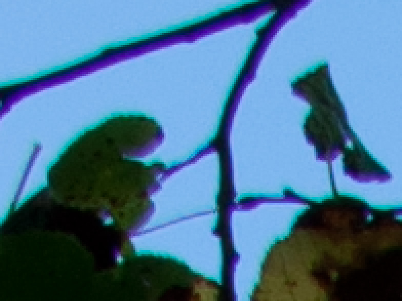 das war nicht direkt ein CA-Effekt, sondern eine "Überkorrektur" derselben in Nikon CNX2 mit der Option "Korrektur des Farblängsfehlers: 100%".
