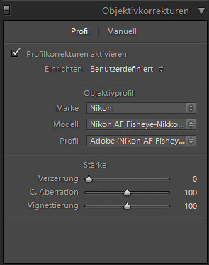 Ich belasse die Einstellungen immer auf der automatischen Farbquerfehlerkorrektur, die auch bei Sigma-Objektiven gut funktioniert.