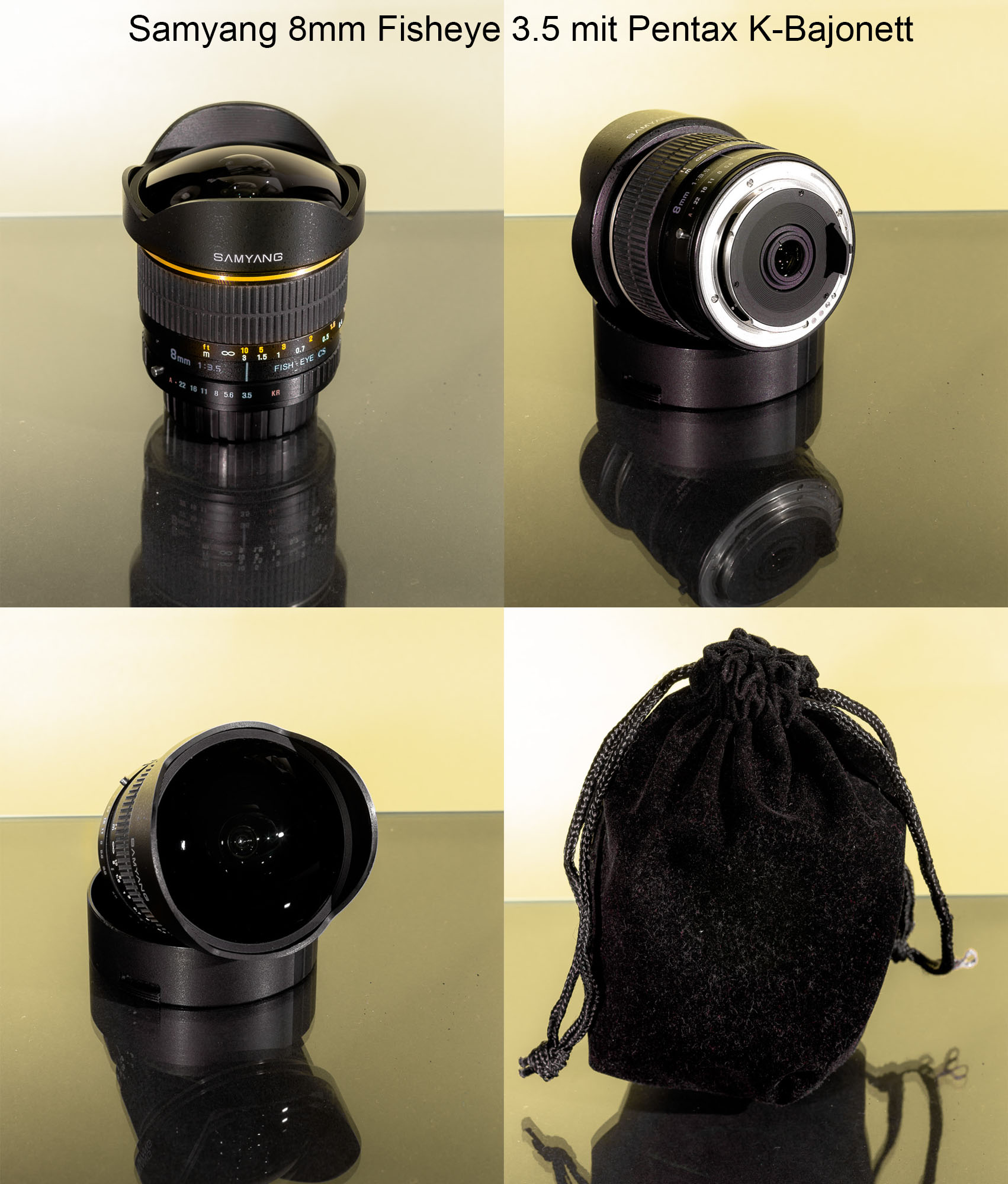 ich trenne mich schweren Herzens, wegen Umstiegs auf Canon, von meiner Pentax K5 und einem Samyang 8mm 3.5 FE, einem Sigma 15mm 2.8 FE und einem Pentax Systemblitz AF-540 FGZ.