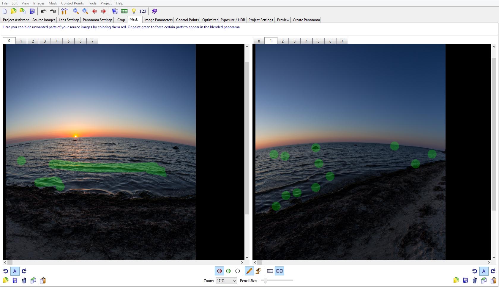 Ich maskiere dazu einfach nur ein paar "grüne Punkte" an den unterschiedlichsten Stellen,