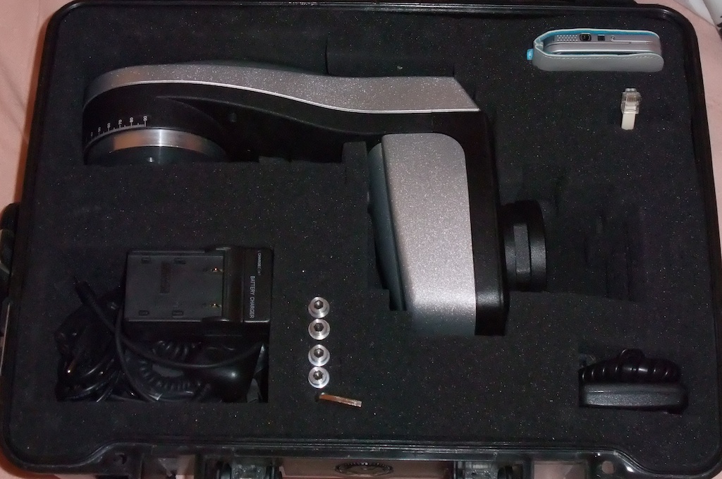 Das Set besteht aus dem Merlin mit installierter Aluminium Krone aus dem Autopano-Forum, einem Bluetooth Modul, dem Batterieadapter von T&C und zwei passenden LiIon-Akkus. Weiterhin sind noch ein Ladegerät für die Akkus dabei, was an 220V und auch an 12V im Auto betrieben werden kann (inkl. dem Zigarettenanzünder-Kabel), die originale Krone, die Handsteuerung und die originalen Batterie-Käfige.