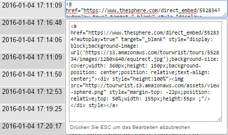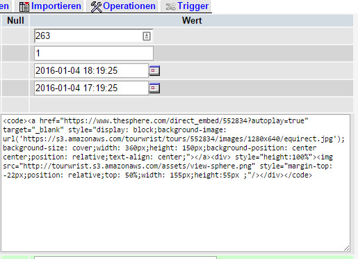 (255, 1, '2016-01-04 14:30:37', '2016-01-04 13:30:37', '<a href="https://www.thesphere.com/direct_embed/552838?autoplay=true" target="_blank" style="display: block;background-image: url(''https://s3.amazonaws.com/tourwrist/tours/552838/images/1280x640/equirect.jpg'');background-size: cover;width: 360px;height: 150px;background-position: center center;position: relative;text-align: center;"><div style="height:100%"><img src="http://tourwrist.s3.amazonaws.com/assets/view-sphere.png" style="margin-top: -22px;position: relative;top: 50%;width: 155px;height:55px ;"/></div></a>', 'Popup-Pano', '', 'inherit', 'closed', 'closed', '', '252-revision-v1', '', '', '2016-01-04 14:30:37', '2016-01-04 13:30:37', '', 252, 'http://kopter.szenerien.de/2016/01/04/252-revision-v1/', 0, 'revision', '', 0),