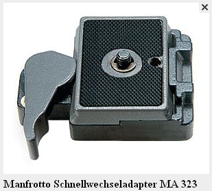 Ach so ja, die MA 323 Platte an der Kamera kann verdrehen! Mann muss die schon extrem anziehen und gute Gumiunterlage haben oder z.B. so eine nutzen. Das ist aber bei fast jedem Schnellwechsler das Problem, ausser ist spezielle für Kamera oder hat so einen einstellbaren Winkel.