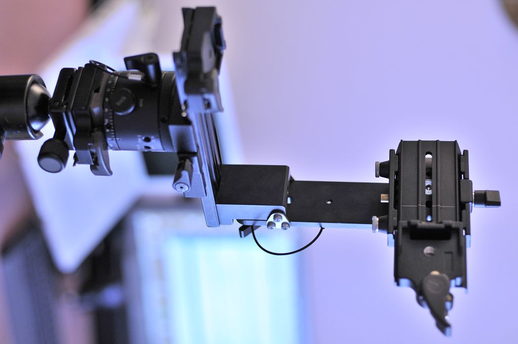 Gegen die Stabilität des Manfrotto-Systems habe ich keine Einwände, nur gegen die Verschiebung vor dem Festziehen. Der S-Winkel würde bei meinem System nichts nützen, denn die Blechplatte ist zu dick. Der NN3 ist mit dem MA-323-Adapter und Alpha_700 bereits am Anschlag der waagerechten Schiene. Wenn ich stattdessen die Alpha_100 nehme, könnte es passen, sonst muss ich doch einmal auf den NN5 umsteigen.