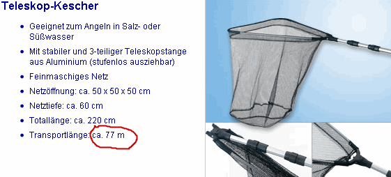 Man beachte bitte die Gesamtlänge von 2,20 m, ohne den Kescher könnte einem die Stange eventuell zu kurz sein.