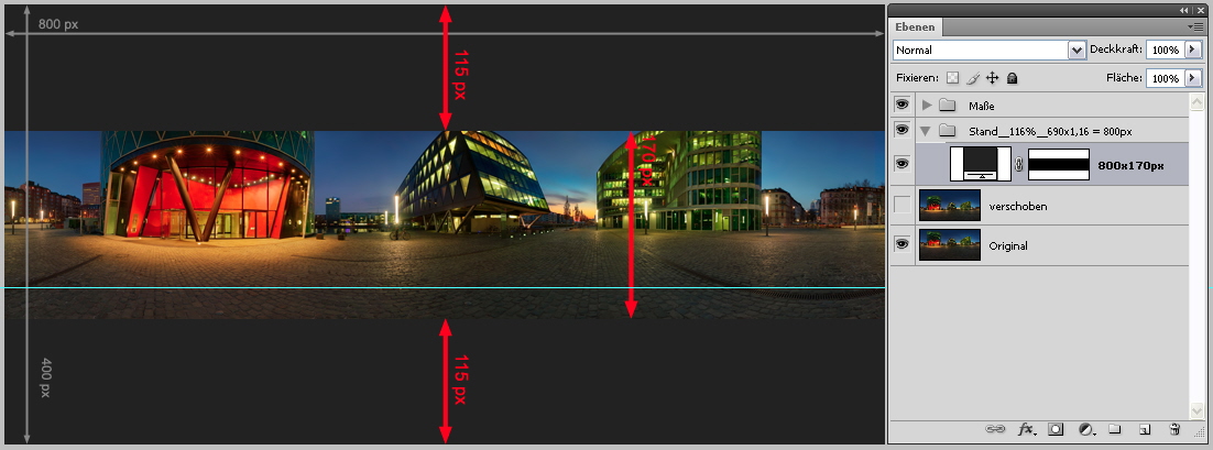 Mein Problem war vielmehr, dass die Seitenverhältnisse von Diashow und Schaufenster so gar nicht korrespondieren und ich mir anfangs nicht klar war, wieviel GENAU abgeschnitten wird.u kannst in PS einfach den Verschiebungseffekt "vertikal" benutzen und das Panorama etwa +70 Pixel verschieben, wenn Du 800 Pixel Breite hast.