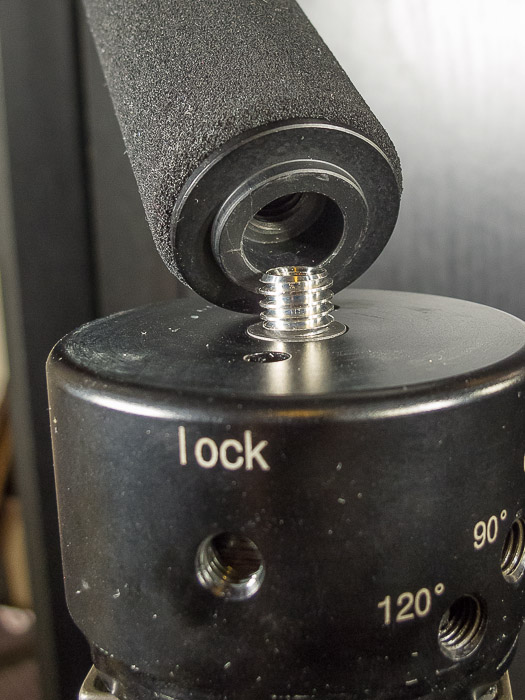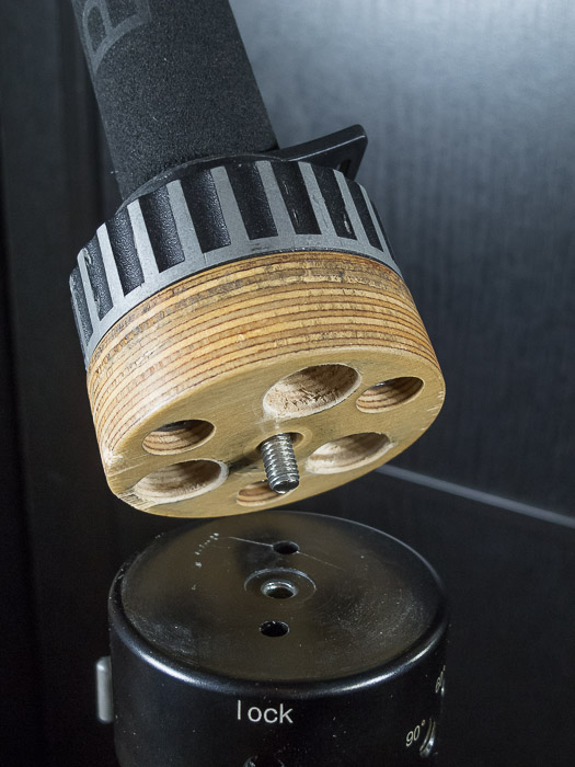 Da shabe ich, ist aber auf der Seite mit dem 3/8" Fotogewinde viel zu kurz um das umgedrehte Einbeinstativ zu "koppeln".
