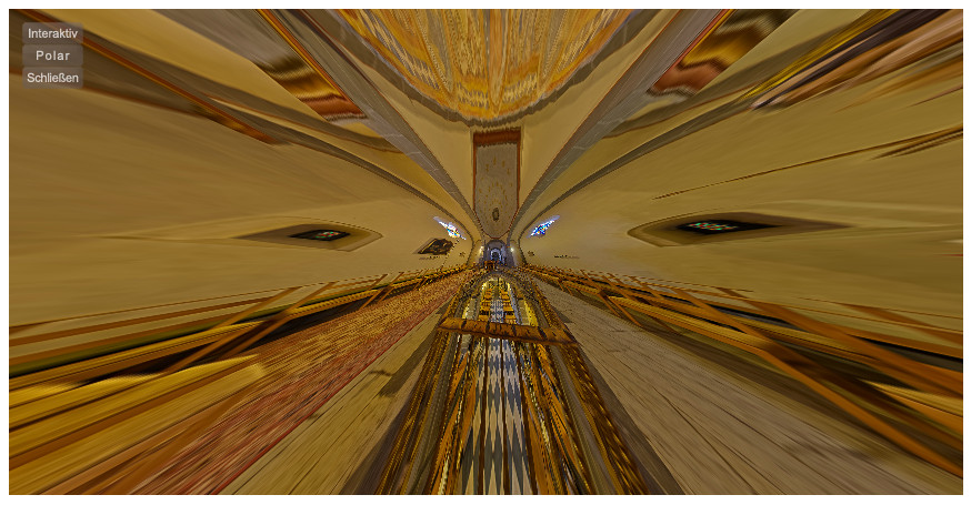 Ansonsten ein schönes Panorama von dieser Kirche. Was meinst Du, wäre es für den Betrachter evtl. interessanter, die Startansicht so auf den oberen Hauptaltar einzustellen, dass man auch noch etwas von der "unteren Etage" sieht? Das würde das Besondere dieser Kirche sofort ins Auge springen lassen.