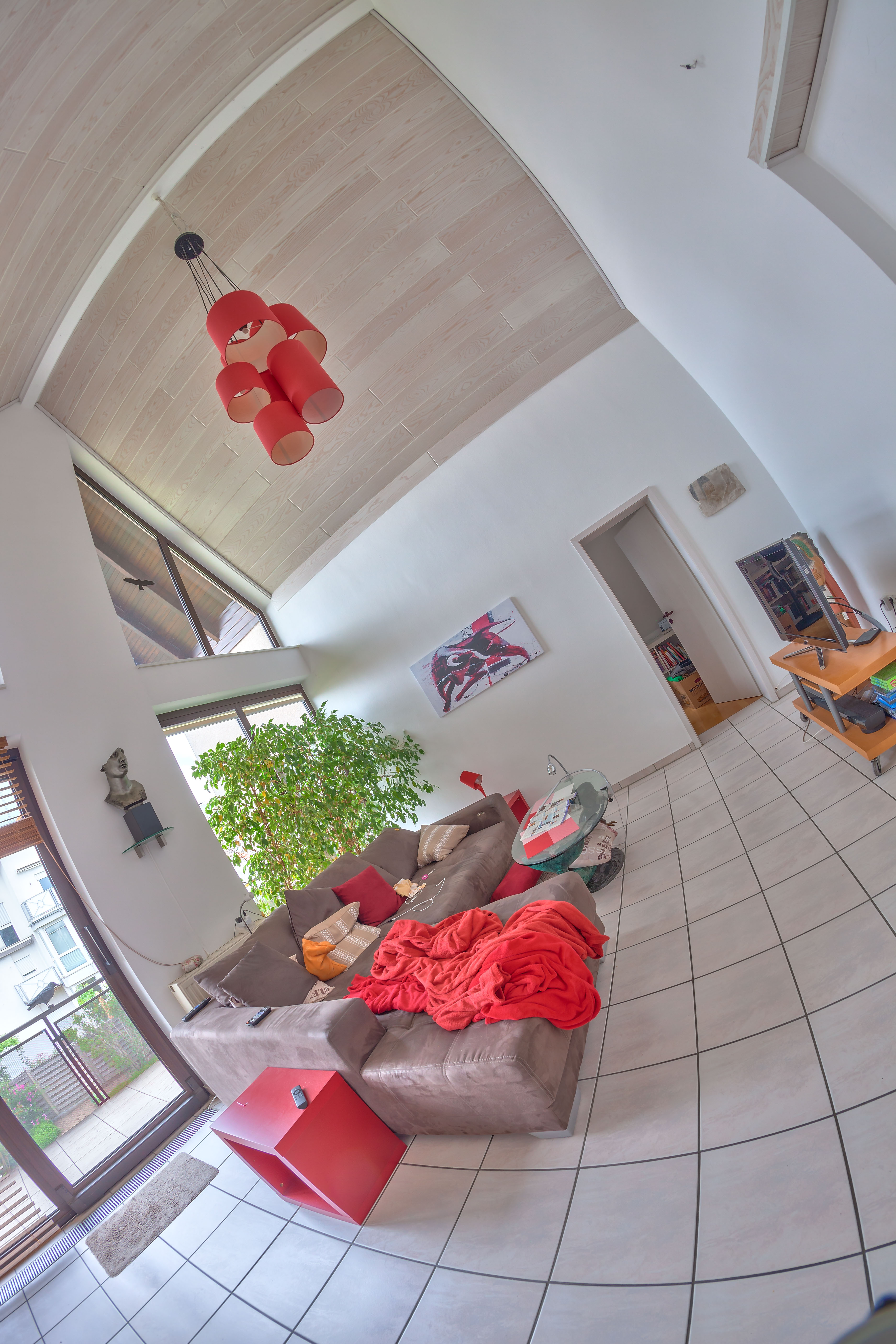 Und hier kommt das Problem. Egal was ich mache - das Nadir-Fliesenbodenbild in unserem Wohnzimmer passt einfach nicht mehr ohne Stitichingfehler ins ansonsten perfekte Slant-Ergebnis. Ich habe die Höhe vom Boden, den Neigungswinkel - kurz alles - probiert, immer zeigen sich mehr oder weniger große Fehler. Auf der Terrasse die gleichen Einstellungen - da funktioniert es. Ebenso bei allen Laminatböden. Ich habe auch an optische Marker auf dem Boden, maskieren und Blendenpriorität in PTGui gedacht - nada!