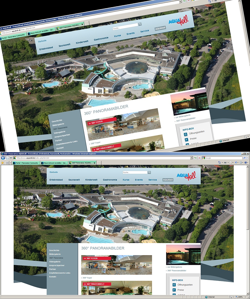 Ich habe mir jetzt mal 2 Panos davon angeschaut, konnte aber keine Stitchingfehler ausmachen. Bzgl. des Bodenbildes kann es aber durchaus sein, dass der Auftraggeber damit weiter Geld sparen wollte.