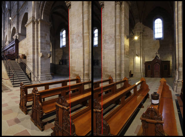 Jetzt die Frage: kann ich beim Stichen überhaupt was dagegen tun? Der Fotograf meint zwar, der Nodalpunkt würde stimmen, aber hier in meinem Arbeitsbereich bin ich wirklich mit meinem Latein am Ende. Vielleicht ist doch beim Fotografieren was schiefgelaufen? Kleine Verschiebungen reichen ja anscheinend schon um solche Fehler zu produzieren. Stempeln mit Photoshop steht außer Frage, ich möchte das Problem an der Wurzel packen.