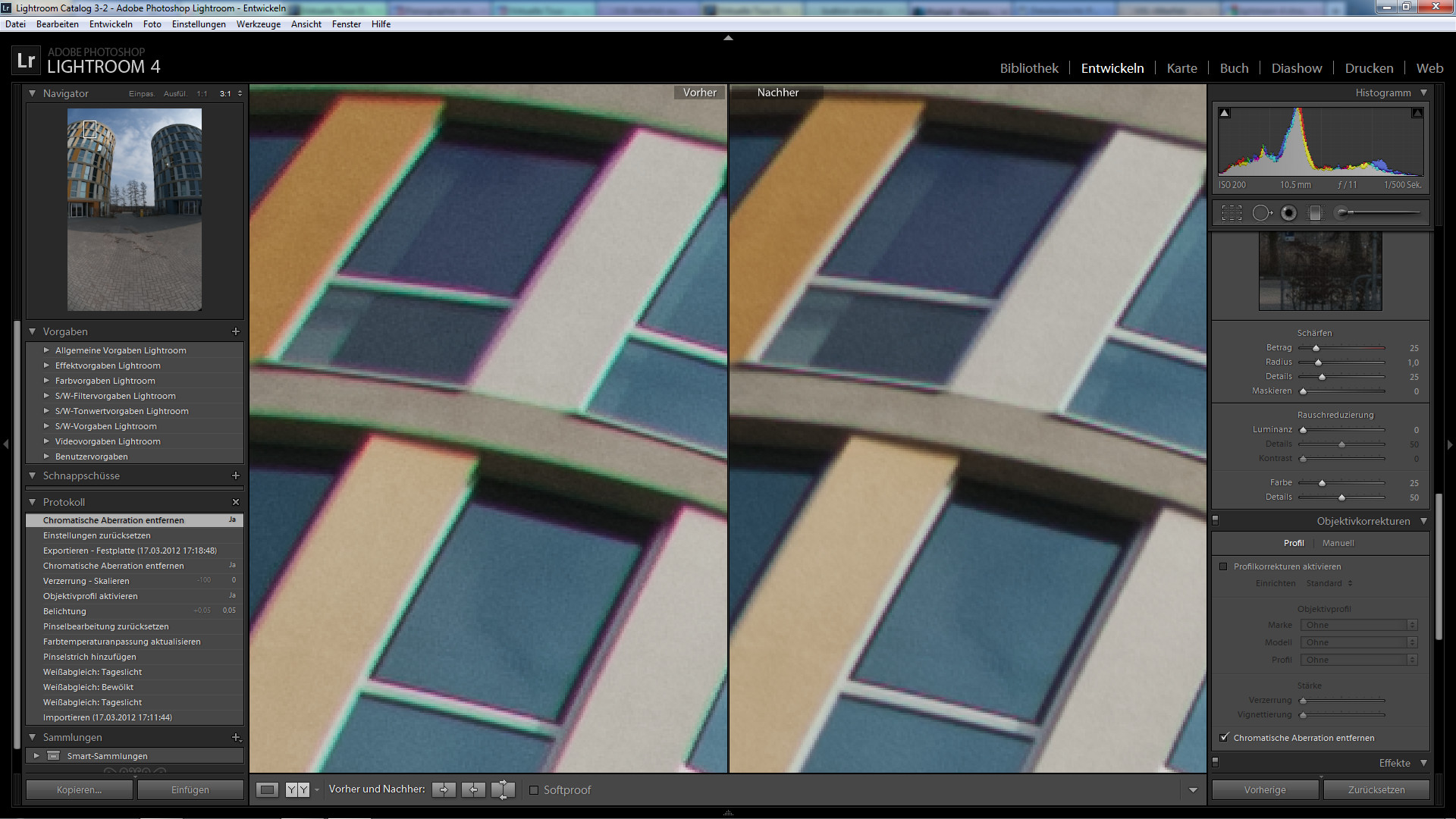 Meine Tests mit den 16er und 10.5er Nikkoren mit vielleicht 300 Bildern sahen bislang sehr gut aus. Offenbar hat Adobe gegen CAs einen zuverlässigen Algorithmus gefunden. Wer LR3-Kataloge und zusätzlich LR3 installiert hat, sollte aber mit der endgültigen Konvertierung vorsichtig sein, da die Kataloge nicht abwärtskompatibel sind.Wer weiß was?