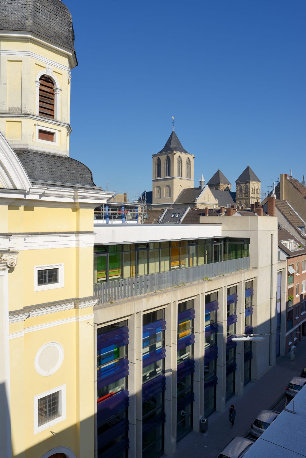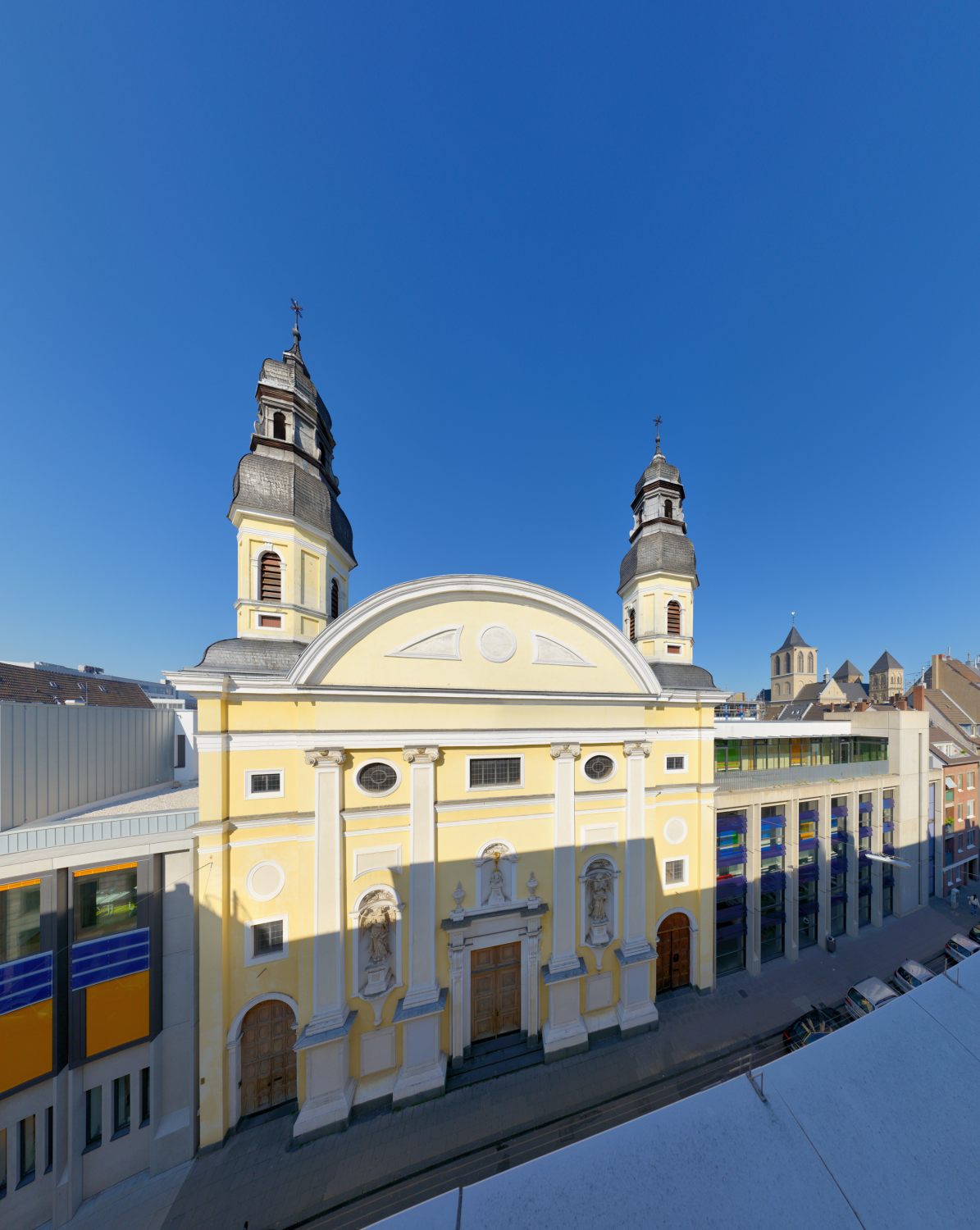 - Der störende Vordergrund (Straße und parkende Fahrzeuge) werden zur Nebensache