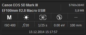 Mein im Vergleich zu Blitzlicht schwaches Dauerlicht und die kleine Blendenöffnung haben ne höhere ISO erfordert. Die Belichtungszeit wollte ich relativ kurz halten da ich ein etwas wackeliges "Geschwind-Stativ" benutzt habe. Bei ISO400 hat man ja zumindest bei brauchbarer DSLR noch nicht mit Körnchenbildung zu kämpfen. Ja die hohe Blendenzahl wegen der Tiefenschärfe. Ich hab`s nur mit der Lupe im Kameradisplay überprüft und bei Blende 13 angefangen, über die ich i.d.R. nur ungern hinaus gehe. Blende 13 hat aber nicht gereicht um die ganze Kamera scharf zu kriegen, deshalb hab ich weiter zu gemacht. Ab wann genau die Beugungsunschärfe beginnt ist zumindest für mich schwer auszumachen. Mit Formeln und Theorien beschäftige ich mich als Hobbyist nicht gern. Die Beugungsunschärfe kommt mir ein bisschen vor wie ein Gespenst: Bei Kugelpanoramen wird die oft heiß diskutiert und aufgrund des enormen Zoom-Potenzials spielt sie sicherlich auch eine wichtige Rolle. Ich hab aber den Eindruck dass eine zu geringe Tiefenschärfe eher auffällig ist als die einsetzende Beugungsunschärfe. Bin aber kein Fotograf und mir fehlt die erforderliche Übung und Routine als daß ich das korrekt einschätzen kann.ISO 400 und Blende 20? Ich vermute, wegen der Tiefenschärfe? Entsteht da nicht auch die Beugungsunschärfe? Reicht keine größere Blendenöffnung?