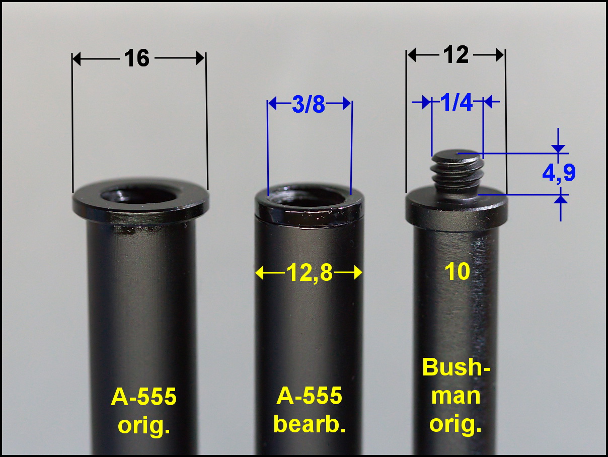 Der Frage bin ich heute auf den Grund gegangen und hab an einem Exemplar des A-555 den (eloxierten Alu-) Bund/Teller auf den Rohrdurchmesser (12,8mm) abgedreht:
