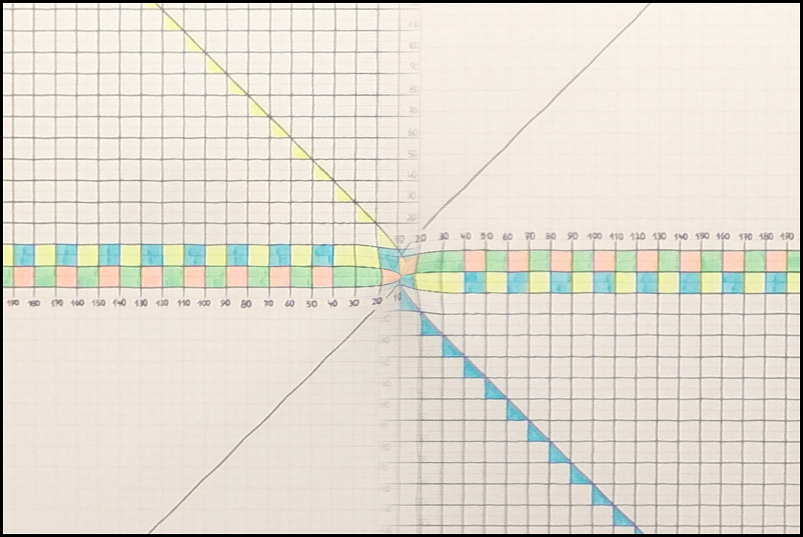 Angenommen wir haben durch Schräglage die Mitte nicht optimal gefunden, dann könnte das z.B. so aussehen: